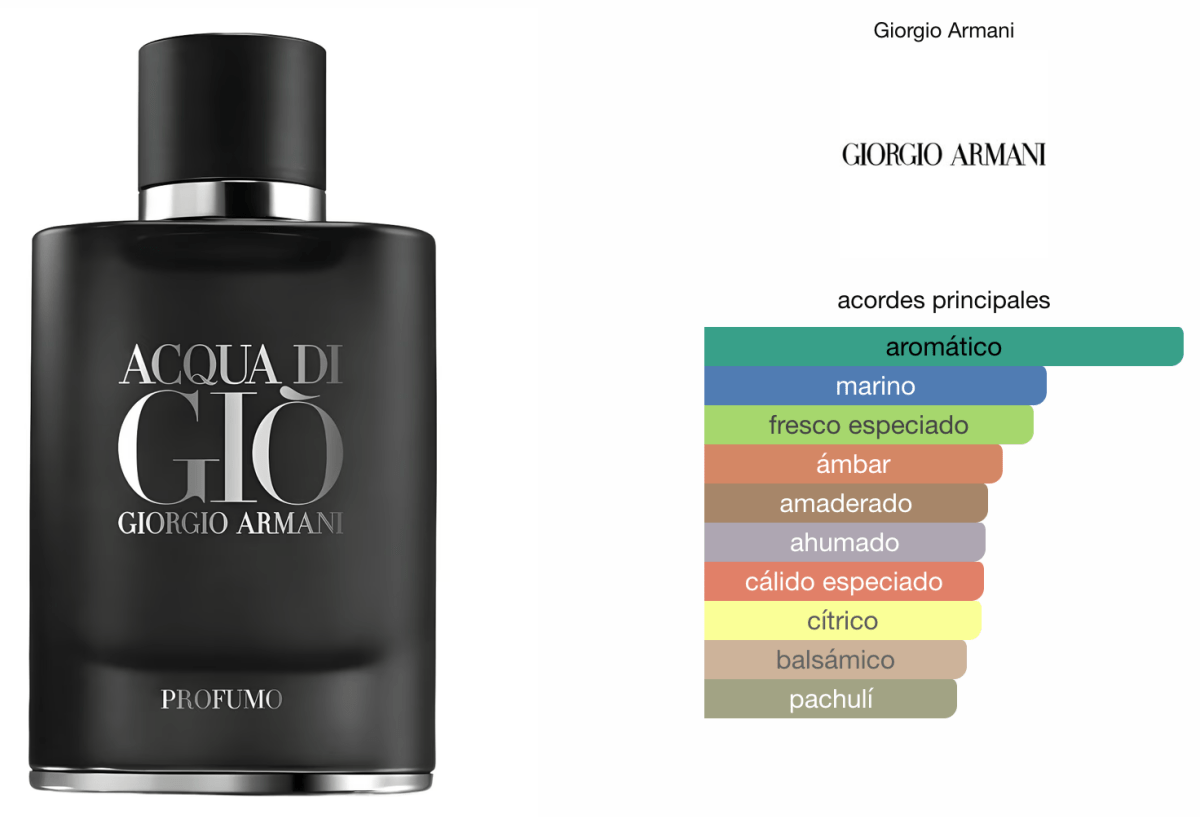 Imagina la brisa del mar Mediterráneo, pero no en un día soleado, sino al atardecer, chocando contra rocas volcánicas oscuras. A esa frescura salada y mineral se le une el humo de un incienso elegante y misterioso. Es una fragancia que combina lo mejor de dos mundos: la frescura acuática del clásico Acqua di Gio con una profundidad ahumada y madura que la hace increíblemente sofisticada y masculina.