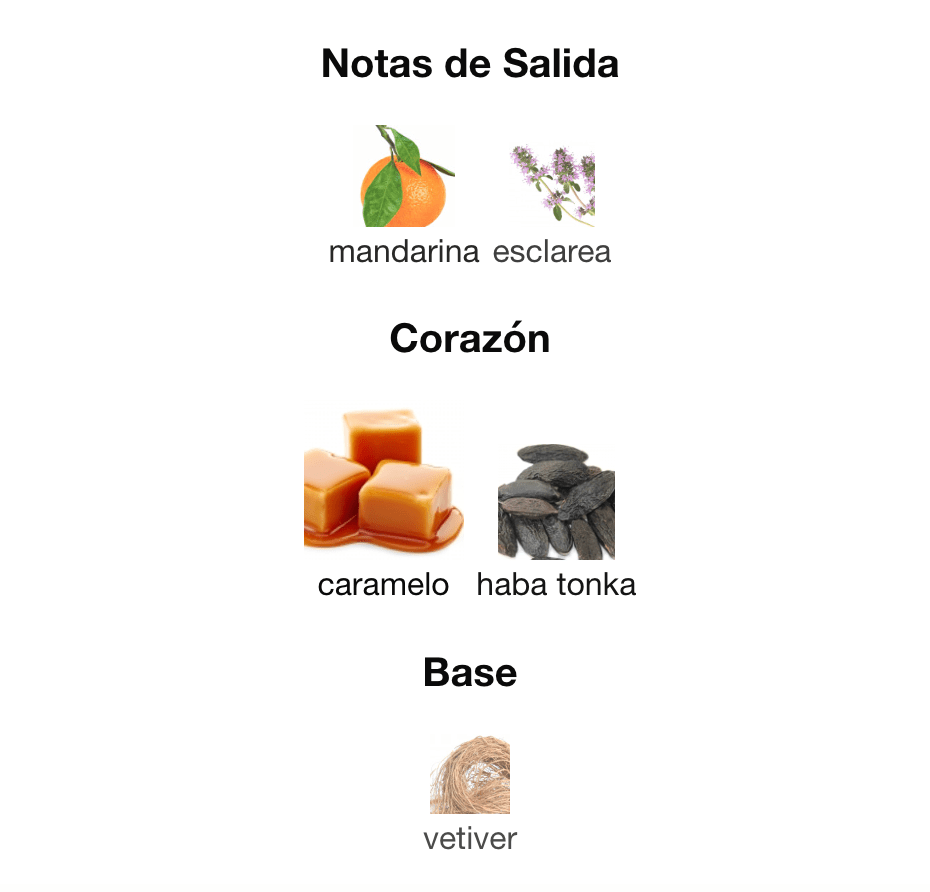 Notas de Corazón: ❤️ Caramelo 🍮 y Haba Tonka.