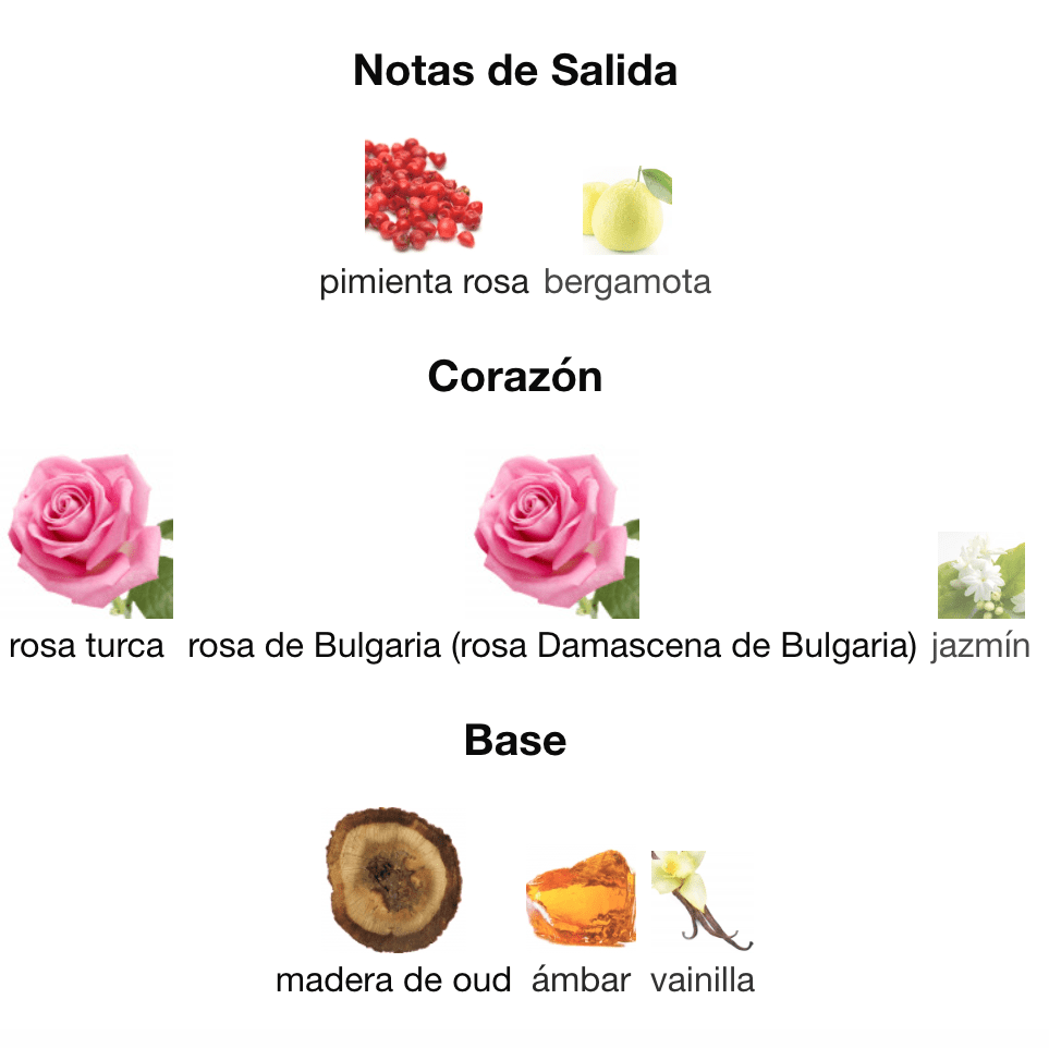 • Sensualidad y Misterio: La combinación de rosa dulce con el oud amaderado y el ámbar cálido crea un aura de seducción y enigma perfecta para la noche.