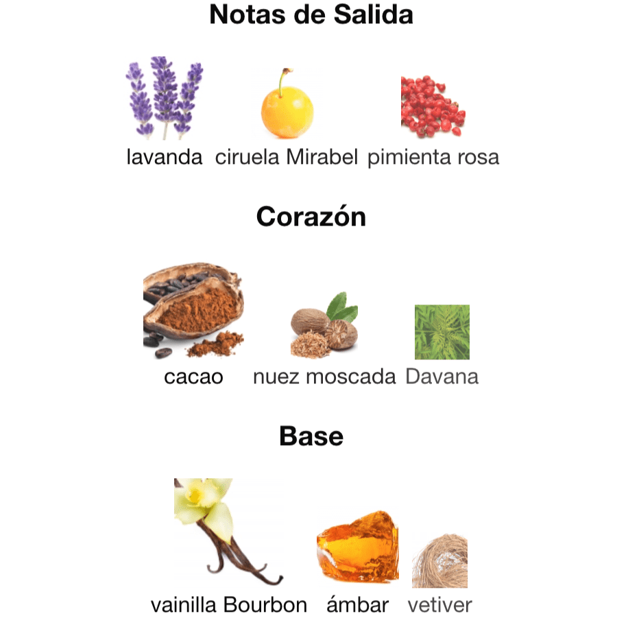 • Aroma Gourmand Seductor: La mezcla de cacao, vainilla Bourbon y ciruela crea un aroma dulce, licoroso y chocolatoso que es altamente adictivo y perfecto para citas.